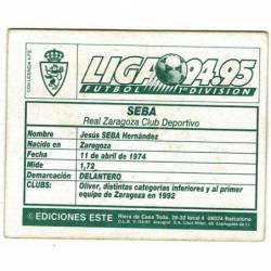 Cromo Ediciones Este Liga 94-95. Real Zaragoza. Seba. Sin pegar